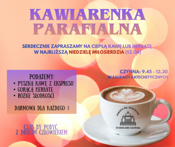 W Niedziele Miłosierdzia będzie przygotowana kawiarenka dla szanownych parafian.